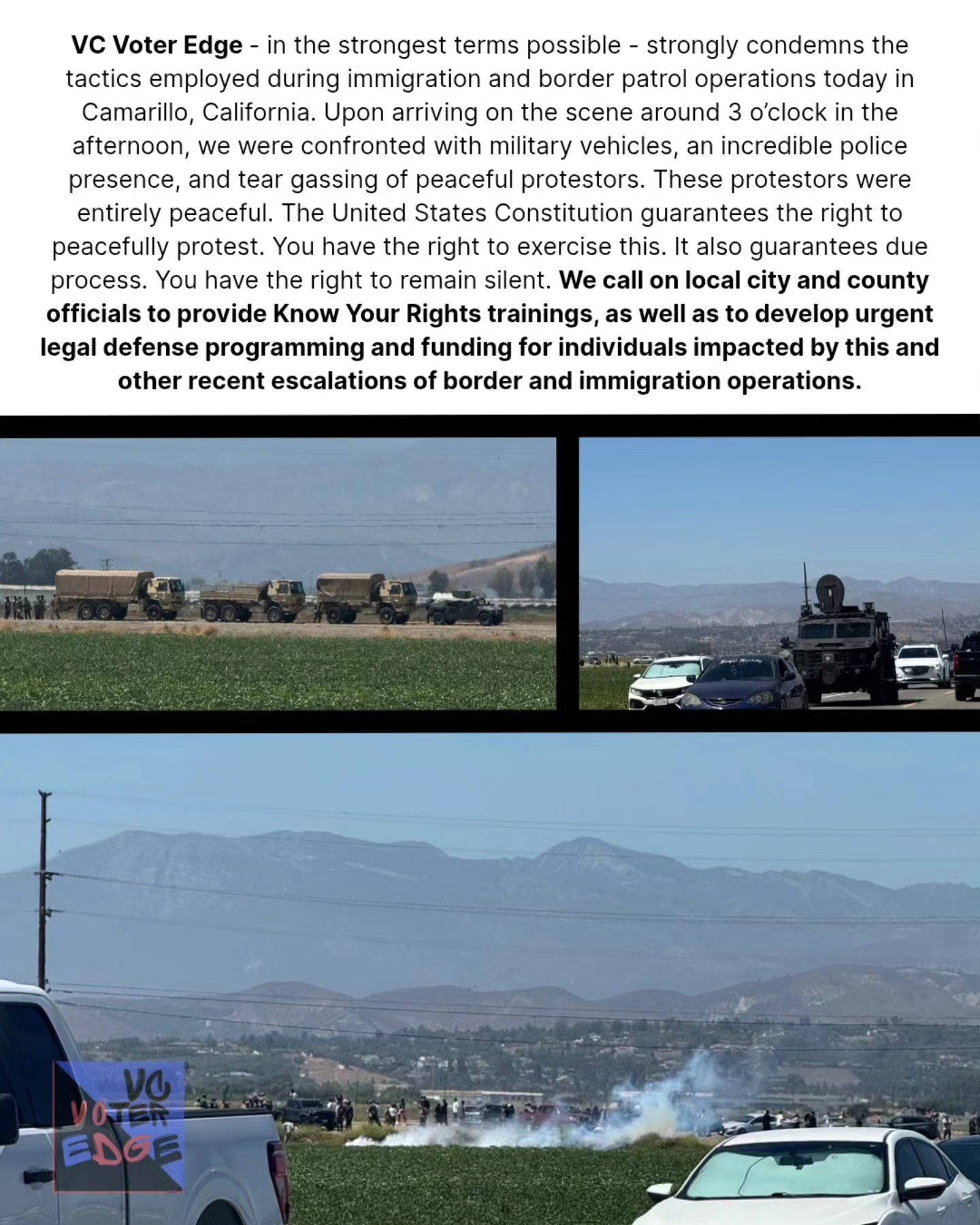 There is more that Ventura County leadership can do, and we will see in the coming weeks and months if they plan to exert those powers to do more. Know Your Rights workshops, legal aid, legal defense funds, food drives, volunteer corps… there IS more without declaring sanctuary and losing critical federal funding that can be done. Statements, press conferences, and Instagram posts though are simply insufficient at this point. They are nothing more than a performance of caring.